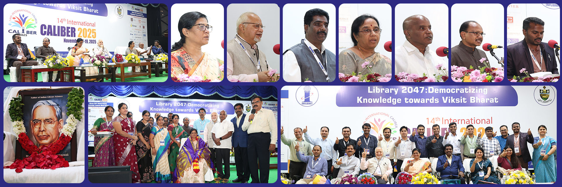 The Centre has established an institutional repository called IR@INFLBNET using DSpace, opensource software. The papers published in the proceedings of the CALIBER and PLANNER are uploaded into the repository. The Repository also includes course materials, newspaper clippings, etc.